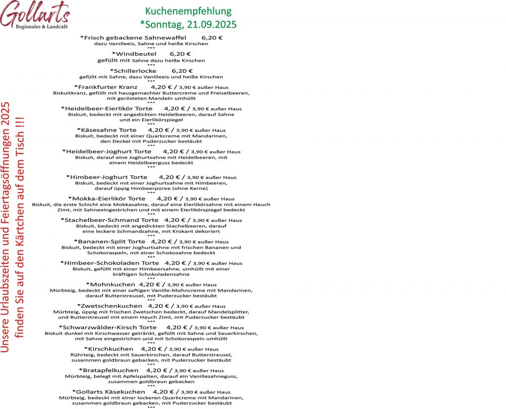 Man hat so richtig Lust auf eine leckere Tasse Kaffee oder einen Tee in den verschiedensten Sorten von bester Qualität? Ein richtig hausgemachtes Stück Torte oder frisch gebackenen Kuchen, Sahnewaffeln mit Eis und Früchten?